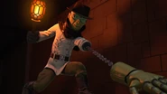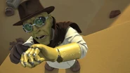 Professor Gorsky has a golden robotic hand he can launch to attack his enemies. It can also be used to grab at objects from afar, as shown when he grabbed the Al'Habarian from an incredible distance and when he caught the light stone after falling in the snake pit.